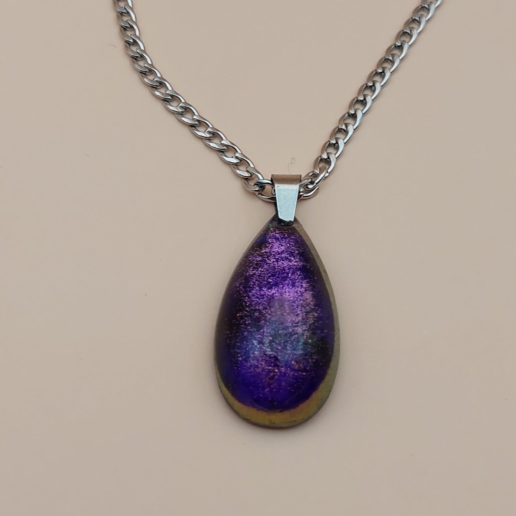 Medalion din rasina in forma de lacrima cu jocuri de culoari sidefate