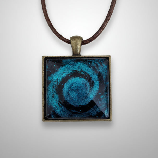 Acest pandantiv elegant din rășină, realizat pe un suport pătrat din alamă, combină nuanțe profunde de albastru într-un design delicat de spirală, aducând un aer unic și rafinat oricărei ținute. Culorile sunt lucrate manual și creează un efect tridimensional spectaculos, transformând fiecare pandantiv într-o piesă unică. Fiecare detaliu reflectă grija și originalitatea lucrării artizanale